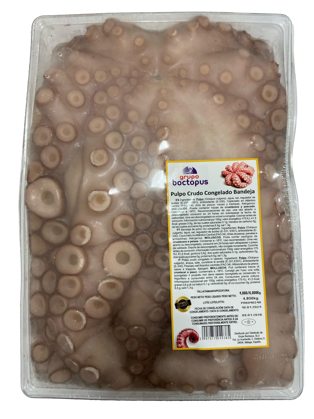 Pulpo crudo congelado en bandejas procedente de una de las mejores zonas pesqueras: el Fao 34.