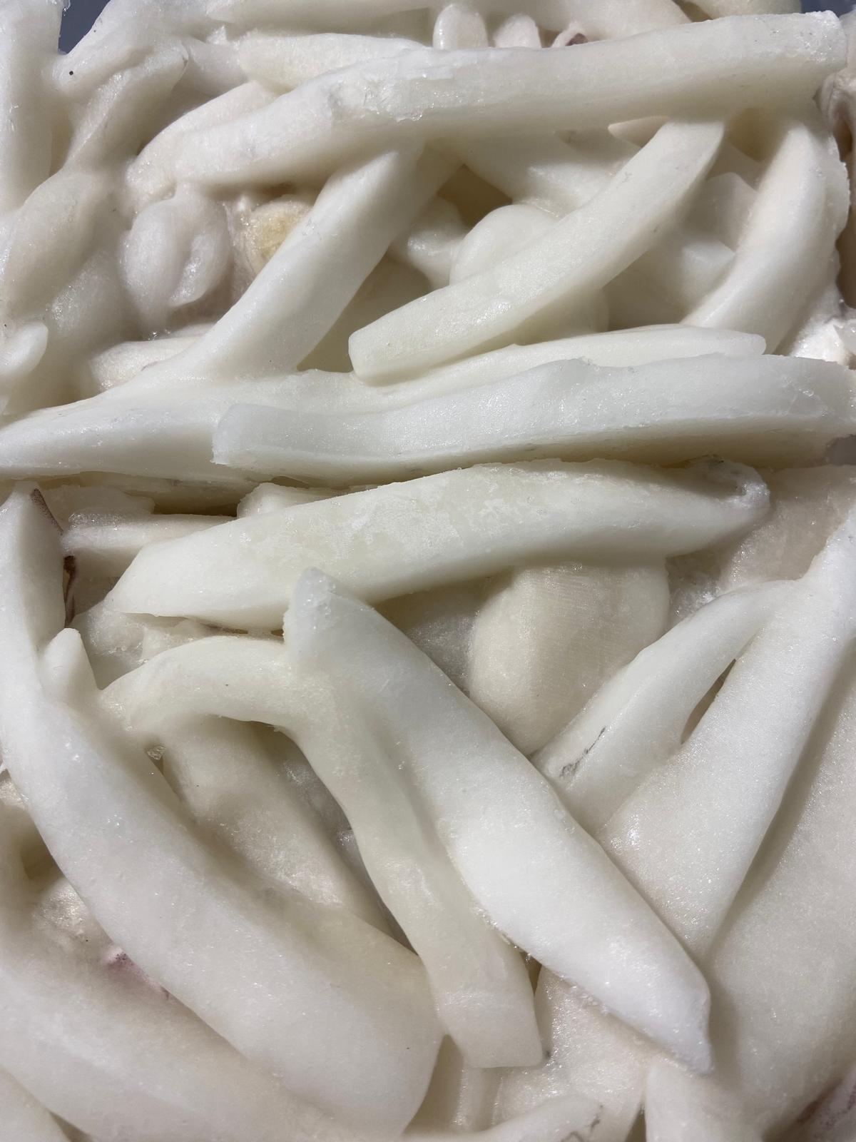 Excelentes y tiernas tiras de choco. Al no estar tratadas, mantienen sus características organolépticas intactas, son sabrosas y saludables. Se presenta congeladas en bloque de 500g para facilitar su manejo y vienen recubiertas por un ligero glaseo que ayuda a mantener intactas todas sus propiedades hasta el momento de su cocinado.